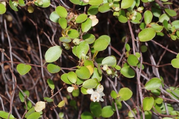 ニュージーランド原産、雌雄異株のつる状の常緑小低木、