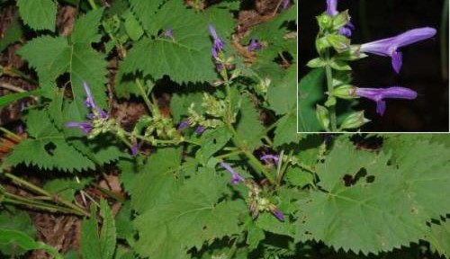 先日、山菜関係の所用で、能登の穴水に行った。お隣の新潟県の講師が、持ち込んだ植物で説明を行っていたところ、地元の人がキバナアキギリは能登には分布してないという。実際に山に入ってみると、青い花のアキギリ Salvia glabrescens Makino ばかりで、キバナアキギリは全く見られなかった。