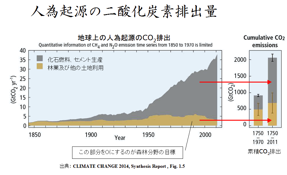 「地球温暖化対策推進大綱」に基づいて、間伐等が推進されてきた。ここで、国際合意に基づく政策の推進と炭素吸収に関する森林の働きの科学的事実の混同が、多くの誤解を生んでいる。京都議定書の第1約束期間(2008~2012年)は終了し、わが国は責務を達成しているが、次の段階はかなり厳しくなることが予想される。