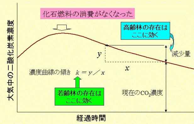 上記、ア、イ の施業は、本来、炭素固定・吸収量を一時的に減少させる。