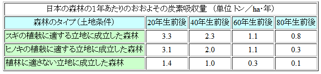 先に述べたように、日本の森林は二酸化炭素を吸収してきた、この森林に対して間伐等の手入れを行うことは吸収量を減らす行為である(科学的事実)。ところが、その吸収量は京都議定書に基づく日本国の二酸化炭素削減義務である1990年比6%には勘定されない。手入れを行った森林が吸収する量のみを削減量として勘定するということである(政治的合意)。